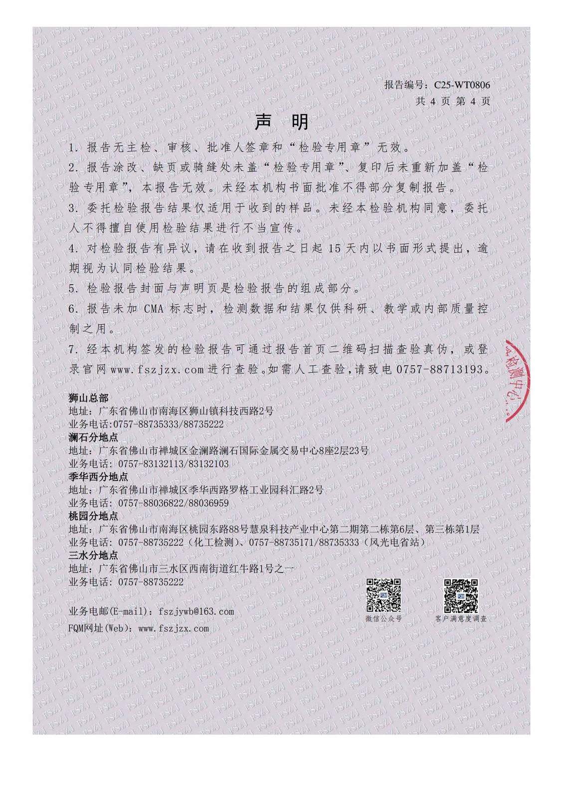 - Testing Laboratory: Foshan Supervision Testing Center of Quality and Metrology (?????????????)